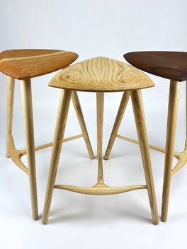 "The Pick" stool was designed as a musician's perch. The rounded triangle shape accommodates varied sitting positions and 3 legs won't wobble on an uneven floor. Available in 19" and 25" seat heights. 25" is also perfect for a counter.
